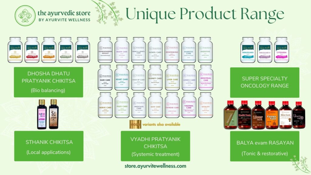 Explore our extensive collection of Ayurvedic products meticulously crafted to address a spectrum of health needs. From time-tested classics to innovative formulations, our wide range ensures you find the perfect solutions for your well-being.